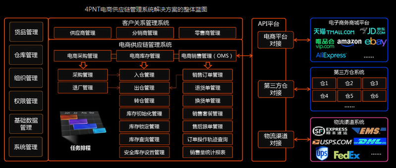 提到供應(yīng)鏈解決問題,那就不得不提電商供應(yīng)鏈管理系統(tǒng),該系統(tǒng)可以通過整合國內(nèi)外電商平臺,將電商在各種直營、分銷渠道的訂單、客戶、庫存等信息進行集成同步和統(tǒng)一管理,實現(xiàn)國內(nèi)外電商業(yè)務(wù)和配套的物流業(yè)務(wù)的高效協(xié)同運營。4PNT四方網(wǎng)絡(luò)電商供應(yīng)鏈管理系統(tǒng)解決方案可同時支持B2C與B2B業(yè)務(wù)運營管理,還可支持采購、庫存、配送等集中管控和分布運營管理,滿足不同業(yè)務(wù)范圍的電商運營需要。