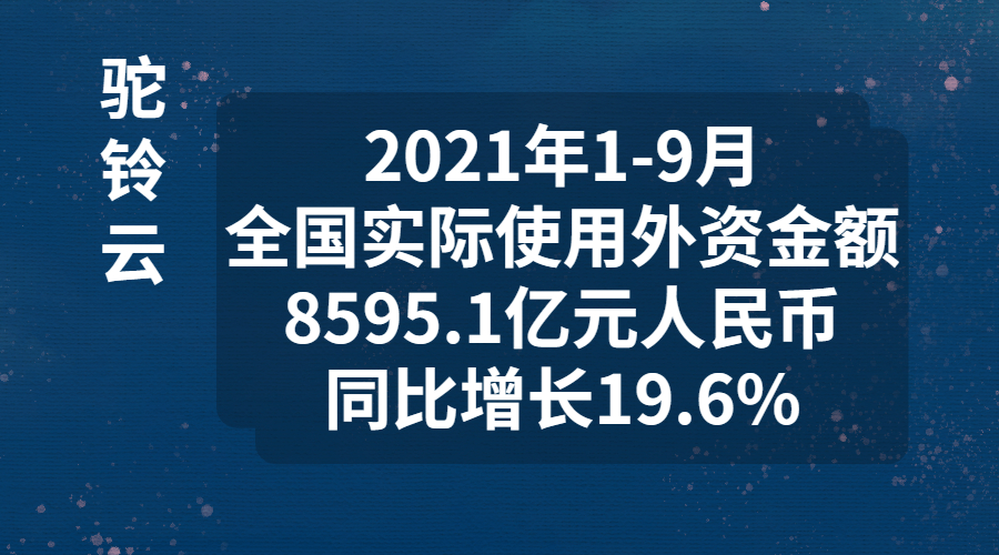 2021年1-9月全國實際使用外資金額8595.1億元同比增長19.6%