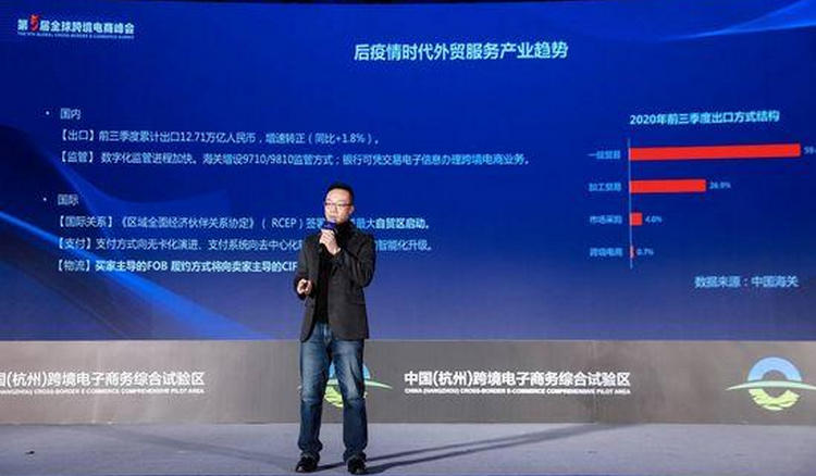 2020年11月24日在“潮起錢塘·數(shù)字絲路”第五屆全球跨境電商峰會上,阿里巴巴國際站跨境供應(yīng)鏈總經(jīng)理王添天回顧了2020年中國出口跨境貿(mào)易大賽道中兩個(gè)核心變化:第一,監(jiān)管層面;第二,業(yè)務(wù)需求,基于客戶本身在業(yè)務(wù)需求面對以后我們要為他們提供價(jià)值的變化。