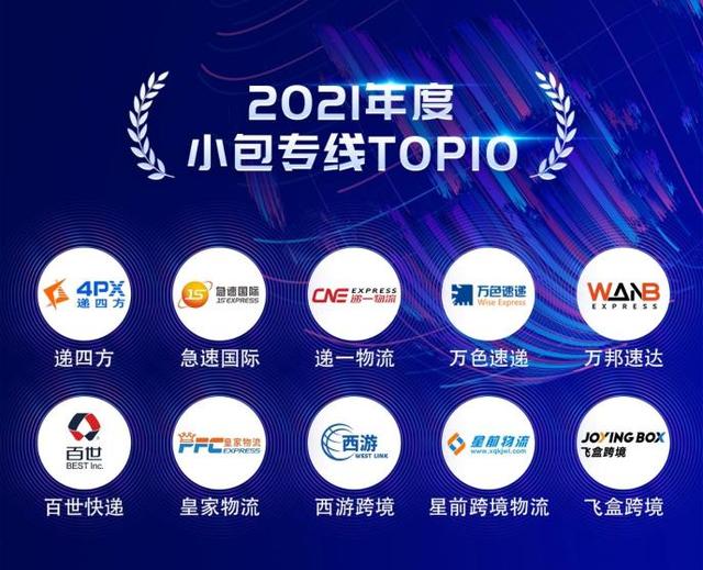 2021年度小包專線TOP10:急速國際、遞一物流、萬色速遞、萬邦速達、百世快遞、皇家物流、西游跨境、飛盒跨境、遞四方、星前跨境物流