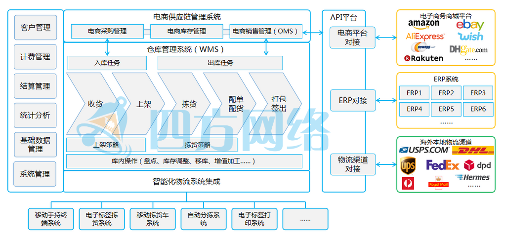 4PNT四方網(wǎng)絡海外倉倉配管理系統(tǒng)解決方案功能藍圖如下所示: